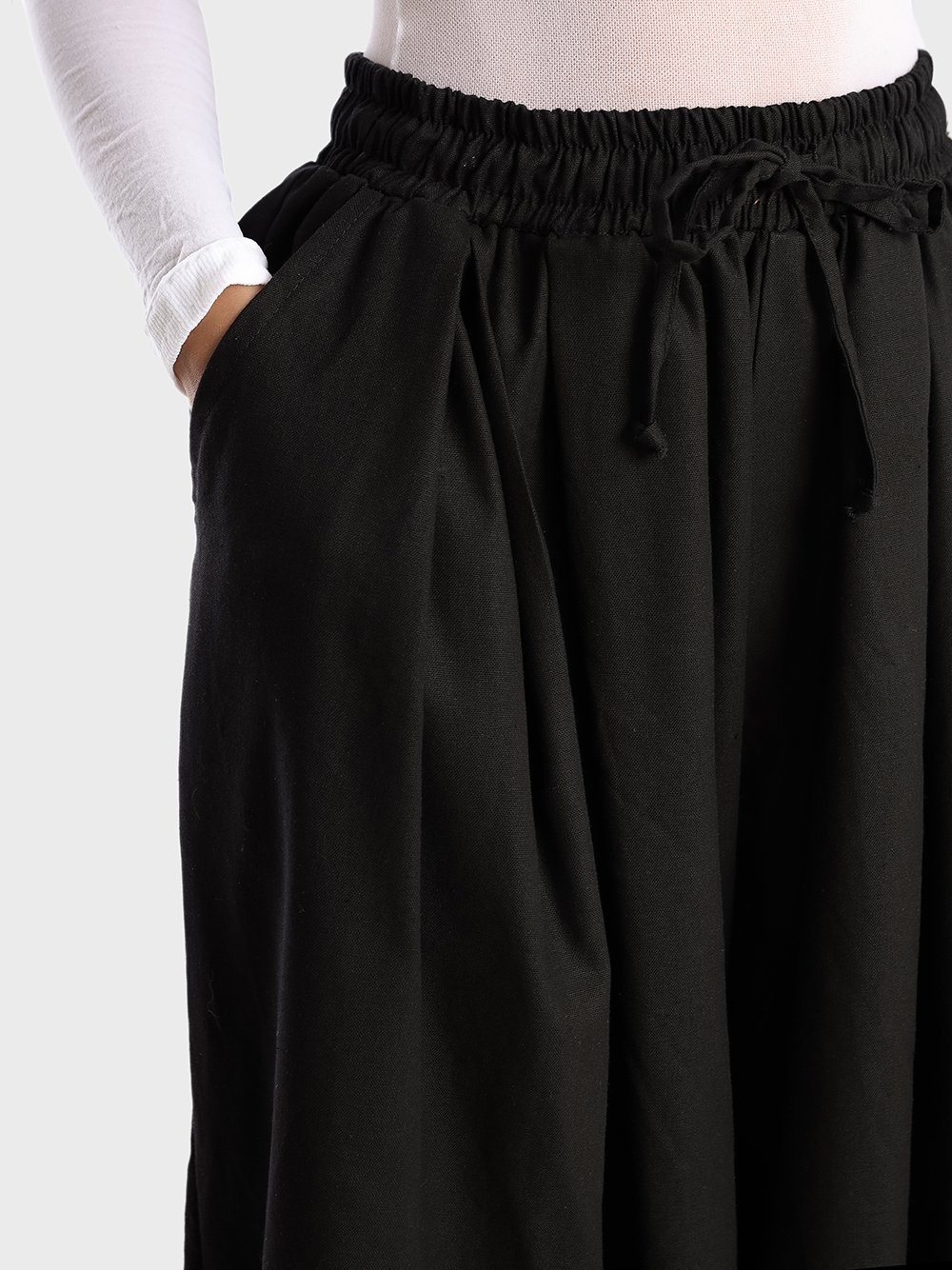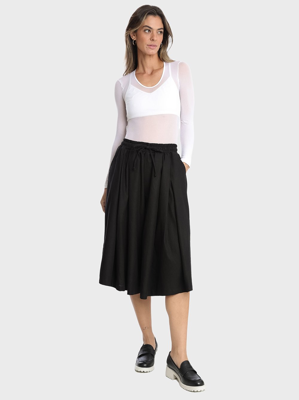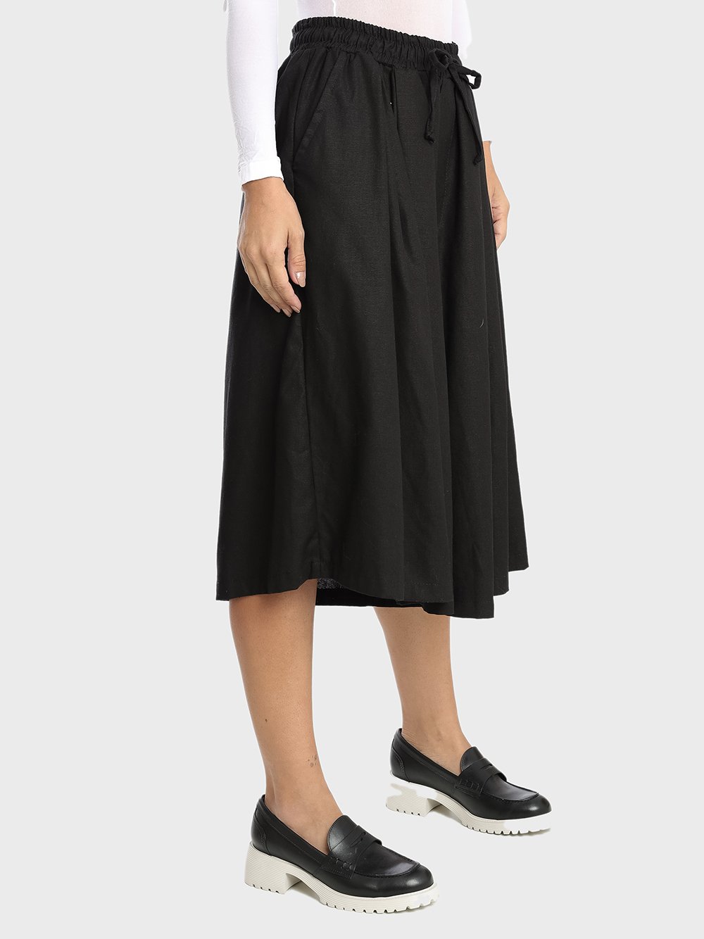 Bermudão pantalona, meio saia calça, muito pano, cós de elástico, riqueza e elegância de sobra nessa peça.