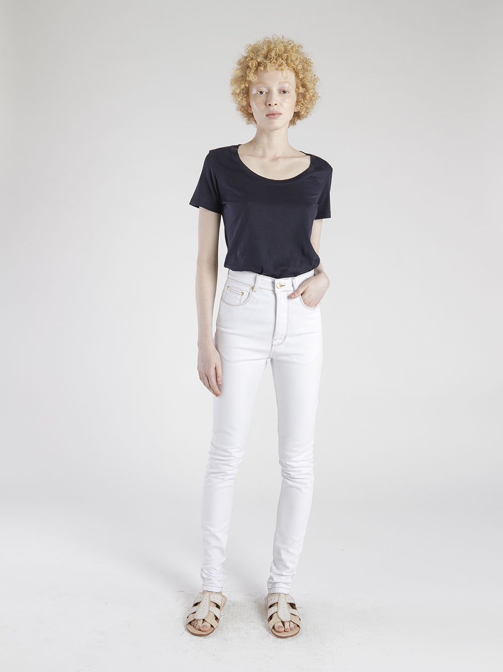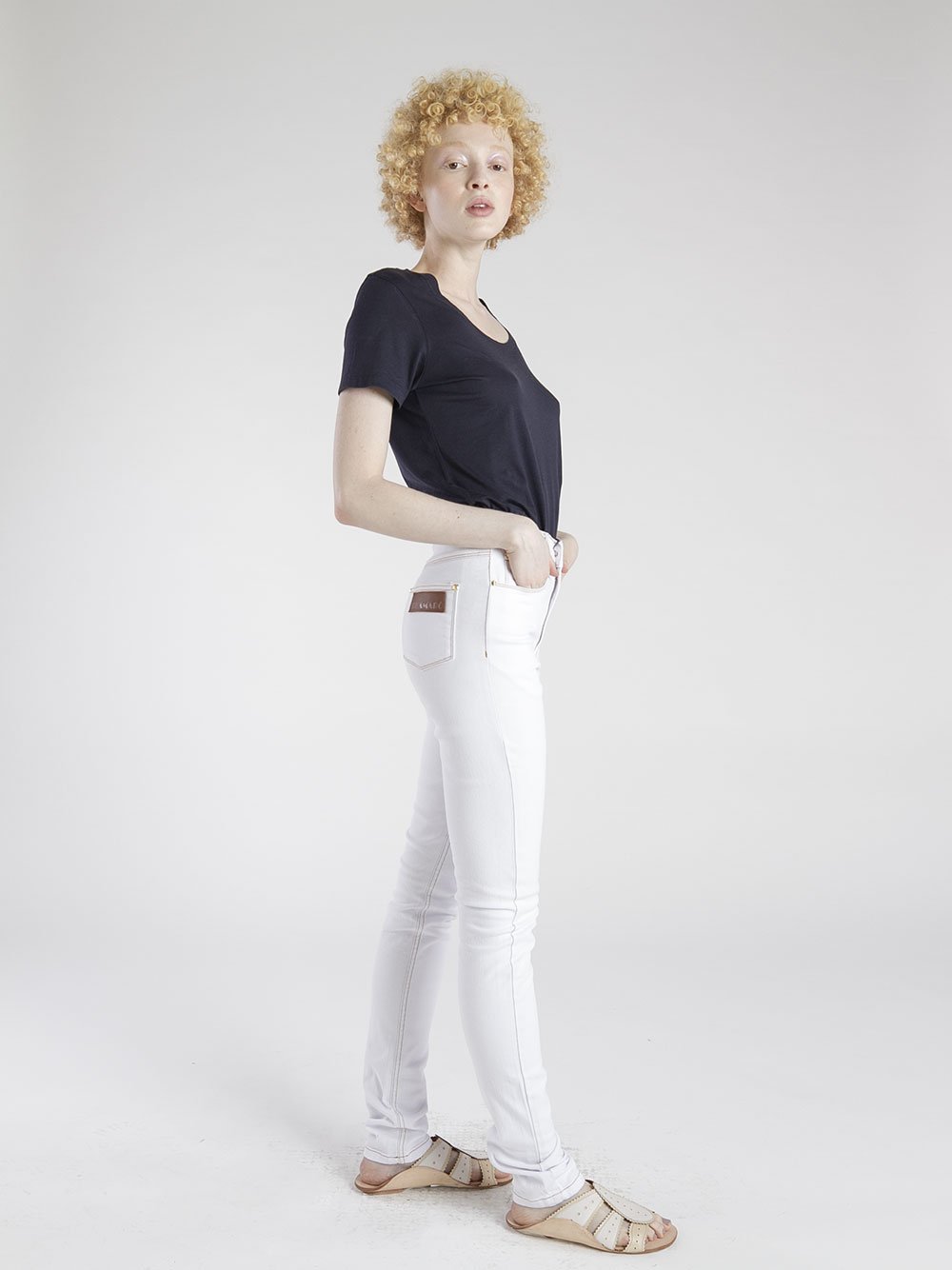 Classica e atemporal. Modelagem acertadíssima, feita em sarja com stretch que modela o corpo, cintura alta, lavagem simples, elegante e descolada. Pode ser chic, pode ser prática, pode ser sua.