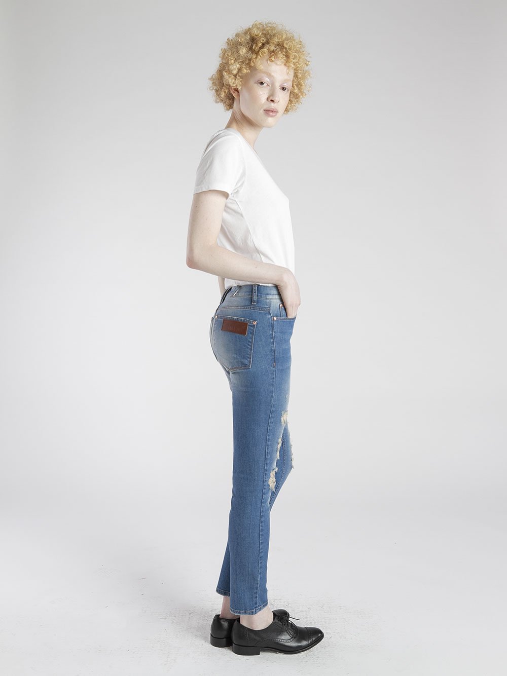 Super skinny de cintura baixa, bem justinha nas pernas. Feita em jeans com strech, super conforto. Lavagem used de personalidade, com rasgos e puídos, super rock star.