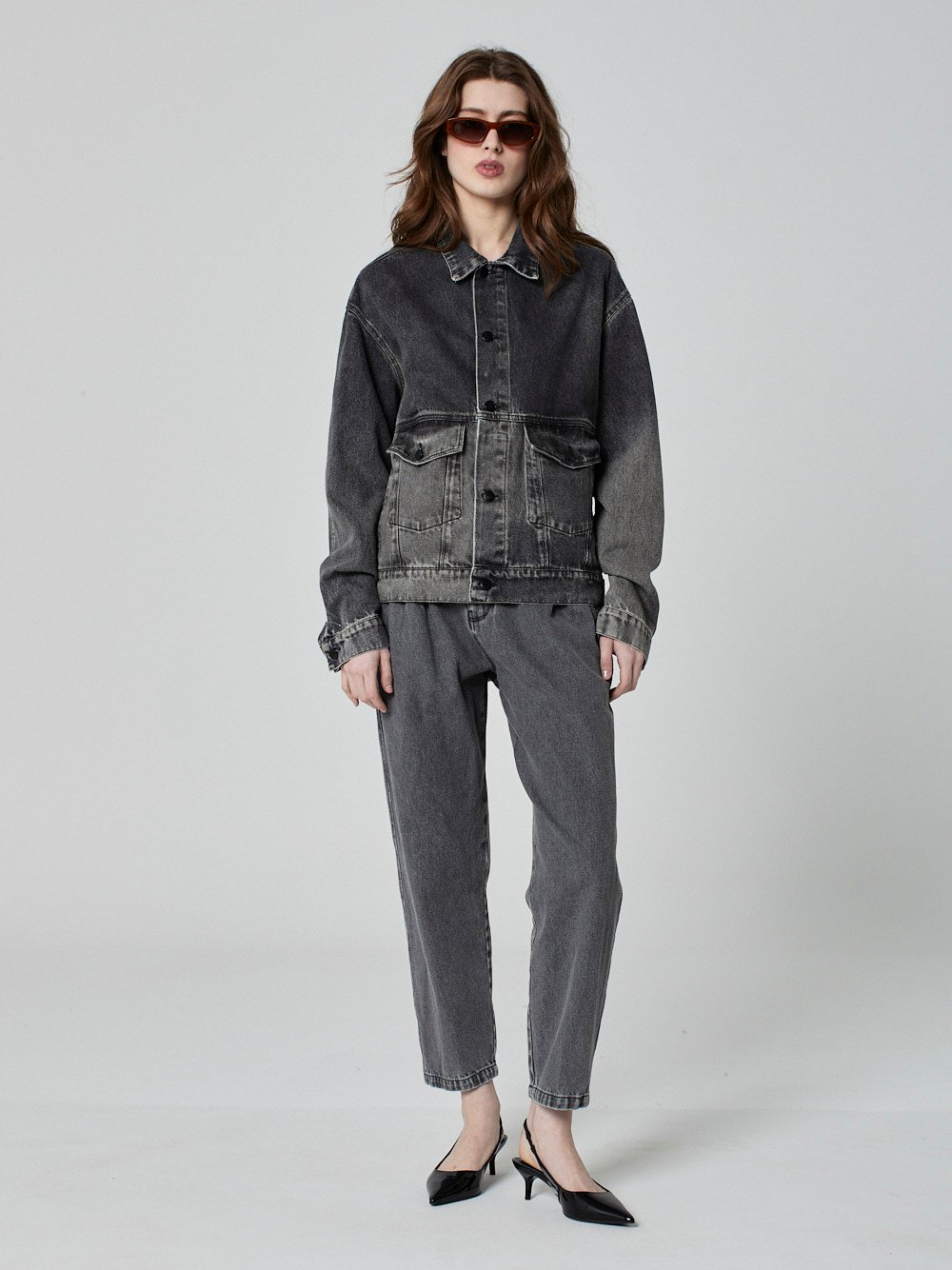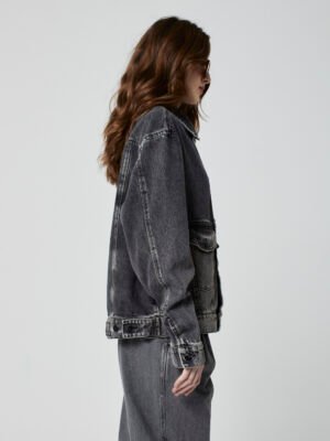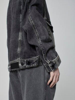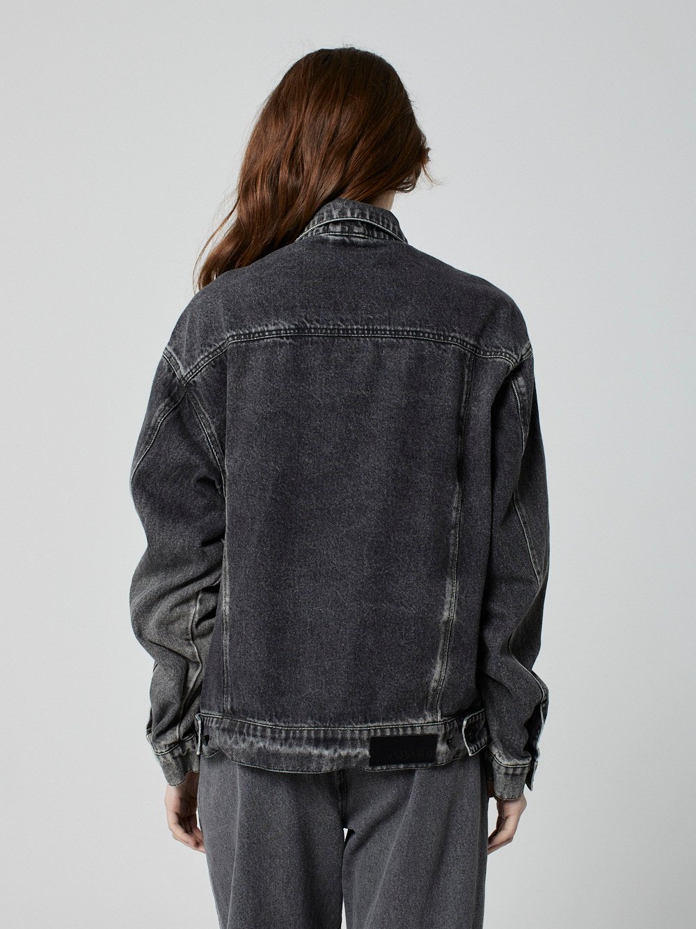 Nesta versão, feita em black jeans 100% algodão, os bolsos saem do comum, dando uma nova forma a esse grande clássico que é a modelagem trucker mas sem perder a elegância, também podendo ser usada em um look mais formal para dar um ar mais descolado.