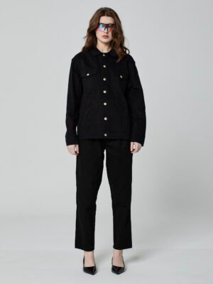 Nesta versão, feita em sarja 100% algodão, bem básica e elegante.
