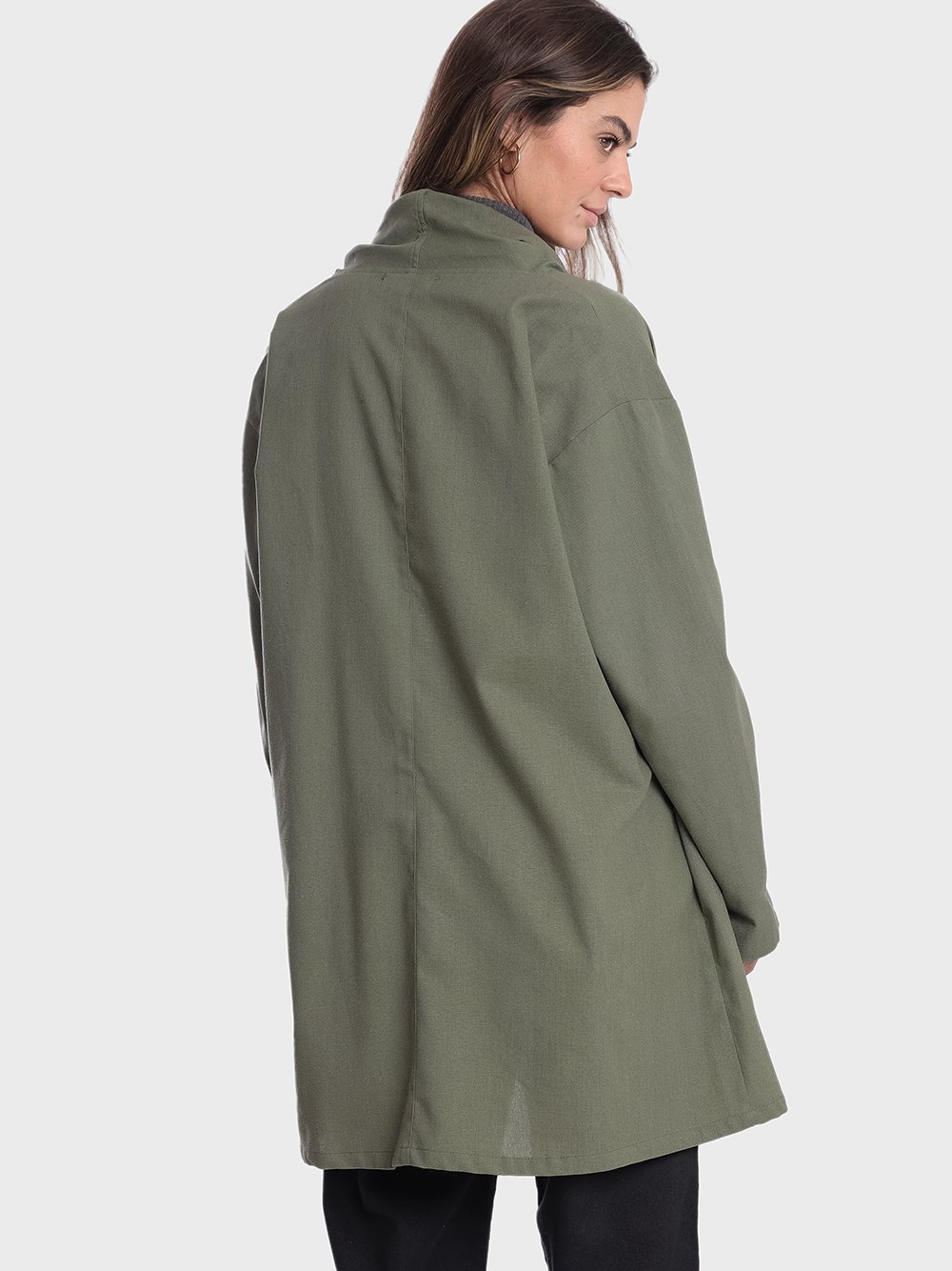 Cardigan oversized em linho, gola panejada, pode ser usada como echarpe, ou de outras maneiras, vai da sua criatividade.
